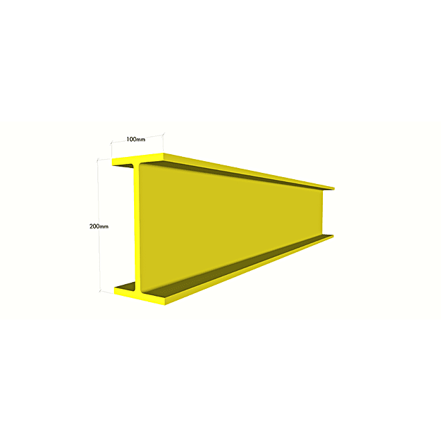 Perfil estructural IN fabricado por pultrusión en plástico reforzado con fibra de vidrio (FRP) compuesta por un 30% de resina y 70% de fibra.
