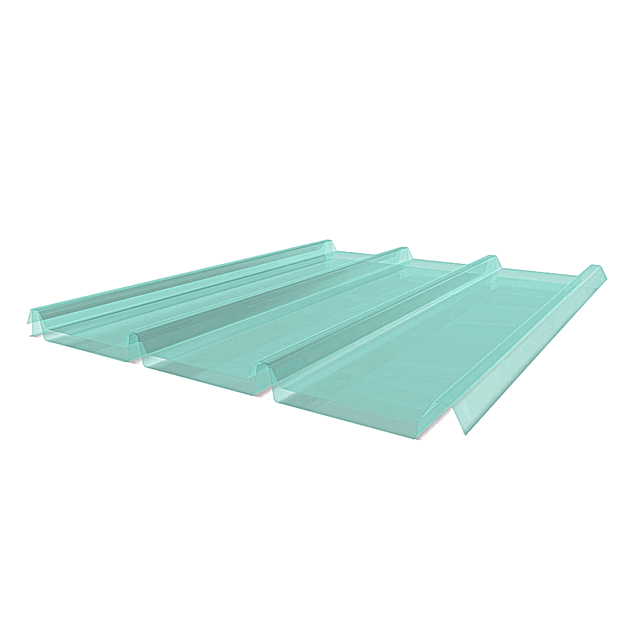 Panel traslúcido doble bandeja fabricado en plástico reforzado con fibra de vidrio (FRP), constituido por panel superior de 6 trapecios de 50 mm de altura, avance útil 1000 mm y panel inferior con frisos rigidizantes de 30 mm o 50 mm para ser compatible con paneles que contengan aislación de PIR, POL, PUR, lana de roca o similar. La cámara de aire que forman los 2 paneles evitan la condensación en los tramos traslúcidos. No se oxida, dieléctrico, alta durabilidad y bajos costos de mantenimiento. Según línea de fabricación podrán tener propiedades FR(retardante a la llama) según norma ASTM D635 y utilizables en ambientes agresivos.