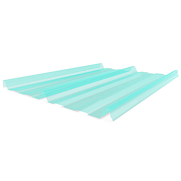 Panel traslúcido largo continuo fabricado en plástico reforzado con fibra de vidrio (FRP), su doble avance constituido por 3 trapecios de 64 mm de alto y avance útil de 914 mm, logran un mayor grado de traslúcidez al ser combinado con paneles opacos. no se oxida, dieléctrico, alta durabilidad y bajos costos de mantenimiento. Según línea de fabricación podrán tener propiedades FR(retardante a la llama) según norma ASTM D635 y utilizables en ambientes agresivos