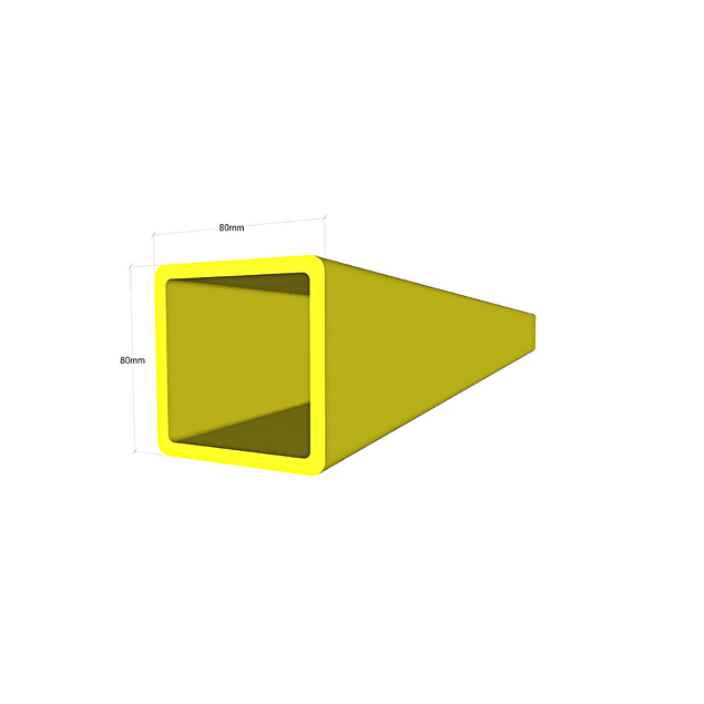 Perfil cuadrado fabricado por pultrusión en plástico reforzado con fibra de vidrio (FRP) compuesta por un 30% de resina y 70% de fibra.