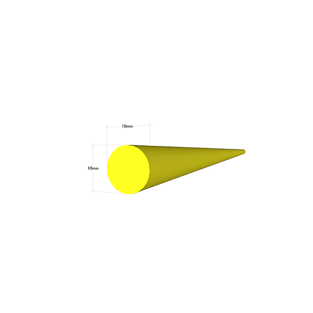 Perfil tubular lleno fabricado por pultrusión en plástico reforzado con fibra de vidrio (FRP) compuesta por un 30% de resina y 70% de fibra.
